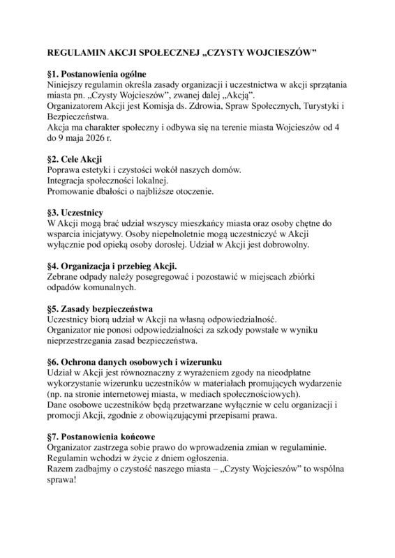 Akcja „Czysty Wojcieszów” Źródło: Rada Miasta Wojcieszów. Magdalena Bąk2026-04-27T15:42:16+02:0027 kwietnia 2026| Udostępnij! FacebookXLinkedInWhatsAppTelegramEmail