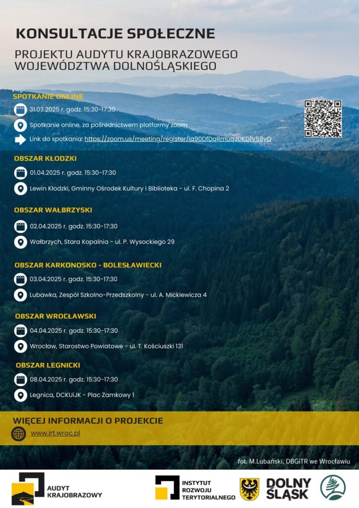 Konsultacje społeczne – projekt audytu krajobrazowego województwa dolnośląskiego Patrycja Kogut2025-04-04T11:57:51+02:004 kwietnia 2025| Udostępnij! FacebookXLinkedInWhatsAppTelegramEmail